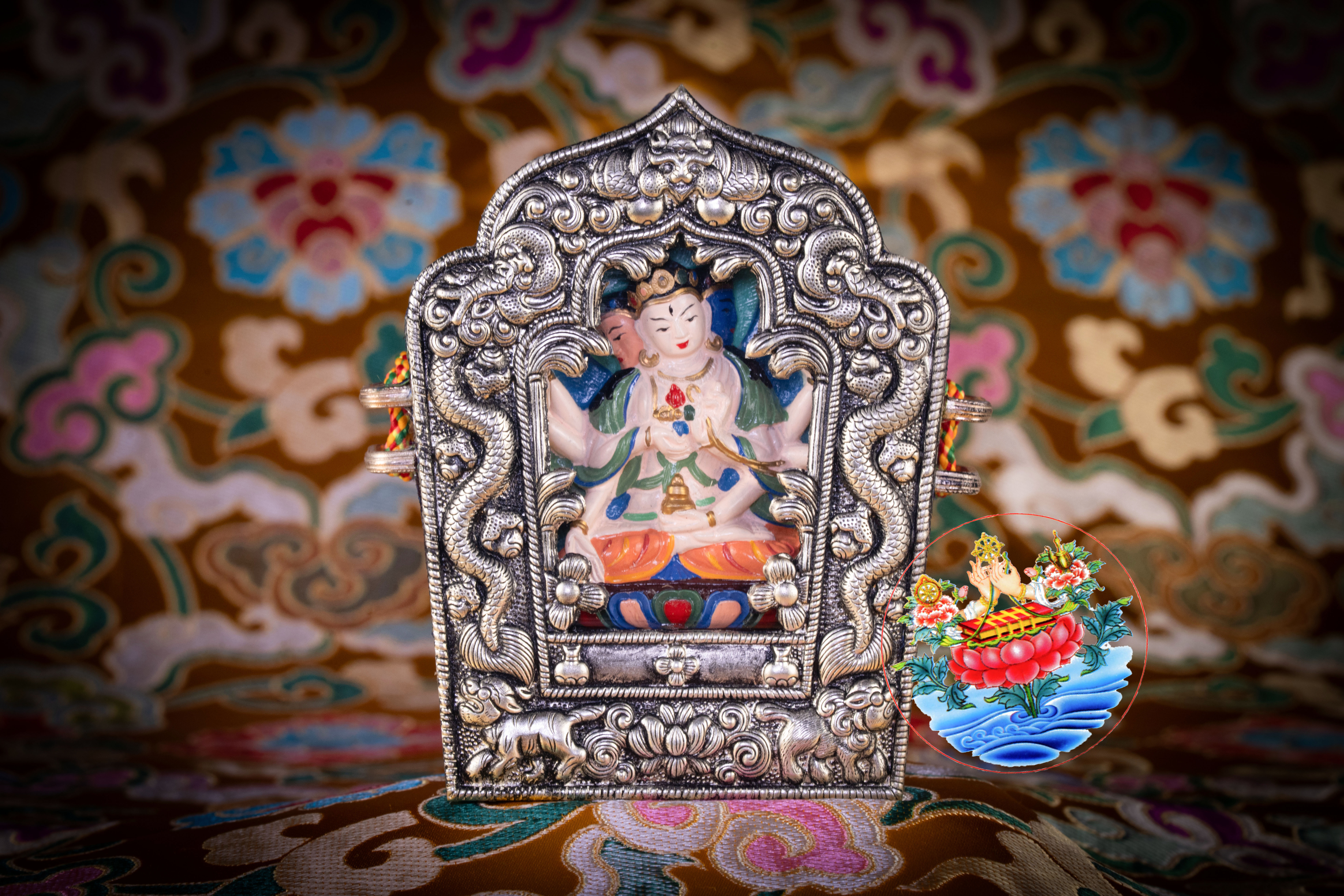雙龍 佛頂 尊勝佛母 彩繪佛像銀質大佛龕