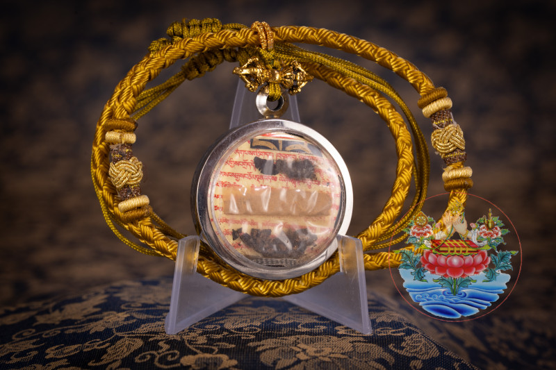 1.以極稀有千種聖物甘露、四大教派四解脫甘露法藥、尊聖 夏宗法王佛學院十三益福物印製印製,並安貼純金金箔智慧佛文殊菩薩乙尊。